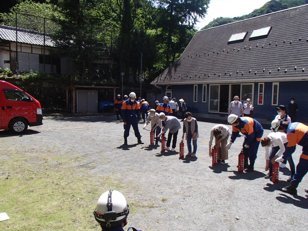 内容は、座学において、火災の基礎知識、火災現場における危険要因について学び、実技として危険予知トレーニング、ホース取り扱い要領、放水要領の訓練を実施しております。