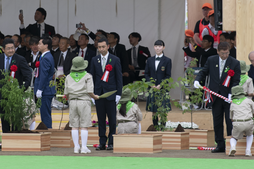 5月25日(日)、天皇陛下の御臨席を仰ぎ、第75回全国植樹祭が秩父ミューズパークで盛大に開催されました。埼玉県での開催は昭和34年以来、66年ぶりとなり、秩父地域にとって歴史に残る特別な日となりました。この瞬間を迎えられたことに、心から感謝の気持ちでいっぱいです。 植樹祭には、県内外から約4,600人が参加し、「人・森・川 つなげ未来へ 彩の国」という大会テーマのもと、健全で豊かな森林を未来へ引き継ぐことを共有する演出が大会全体を通じて展開されました。 これにあわせ、秩父市の奉祝記念事業として、「秩父祭・川瀬祭 笠鉾・屋台特別公開」が実施されました。当日、天皇陛下は秩父神社にお立ち寄りになり、小鹿野子ども歌舞伎の鑑賞や秩父夜祭で使用される笠鉾や屋台をご覧になられました。私はお出迎えの際、秩父市民を代表して心からの歓迎の挨拶を申し上げました。 式典プロローグの歓迎の挨拶では、この地域が歴史と文化資源に恵まれた観光地であること、さらに県内で最も多くの森林を有し、その森林から育まれた豊かな水が人々の暮らしに安心を与えていることをお伝えしました。また、森林の保全整備に積極的に取り組んでいることを強調し、「活樹」の意識を持って森林資源の循環利用を進め、美しい森林を未来の子どもたちへつないでいくことをお約束しました。 記念式典では、天皇陛下よりお言葉を賜り、かつて武甲山や雲取山、両神山に登られ、美しい自然に魅了された思い出を語られたことに、深い感動を覚えました。天皇陛下のお手植えやお手播き、三旗掲揚、そして式典や各種アトラクションでは、秩父市の緑の少年団が多くの参加者の前でしっかりと介添えなどの役割を果たしている姿を見て、感動が胸に迫りました。 また、秩父地域の県立高校4校の生徒たちが「式典アシスタント」として参加し、表彰者の案内などを担当していました。生徒たちは緊張しながらも一生懸命に役割を果たし、来場者の皆様に温かいおもてなしを提供していました。このような素晴らしい若者たちがいることを誇りに思います。彼らの活躍を通じて、秩父地域の未来が明るいものであると確信しました。私たち大人は、若者の背中を押し、互いにさらなる成長を応援していくべきだと感じました。 これらの成功は、関係各所の皆さまの熱意とご尽力があったからこそ成し遂げられたものです。心より感謝申し上げます。皆さまの支えがあってこそ、私たちはこの特別な日を迎えることができました。また、全国からお越しいただいたお客様をおもてなしの心で迎えられたことも、秩父市の誇りです。 植樹祭と記念事業を通じて、私は秩父地域の素晴らしさを改めて実感しました。皆様の祭りに対する深い愛着と、地域を支える強い結束力を感じました。この地は、自然と風土が調和し、互いに助け合いながらまちを築いてきた「わかちあい」の精神が根付いています。秩父の美しさは、文化や歴史、伝統、そして熱意によって支えられています。それらが今回の植樹祭と記念行事の成功に繋がりました。 この素晴らしい秩父の地を、私たちの子や孫、さらにはその先の子孫に誇り高く手渡していくために、私は秩父市長として全身全霊で働く覚悟を新たに決意しました。「個性ある地域の力を活かして、わかちあいの秩父をつくる」という理念のもと、皆さまの生命と財産を守り抜く覚悟を持って、市政に全力を注いでいきたいと思います。 私たち一人一人が森林を大切にし、その恵みを次世代へと引き継いでいくことが、今求められている使命です。皆さまと共に、地域の特性を活かした森林保全や再生に向けた取り組みを強化し、次世代に美しい秩父の森を引き継いでいきます。 改めて、市民の皆さま、本当にありがとうございました。これからも共に手を携え、秩父市をより良い未来へと導いていきましょう。皆さまのご支援とご協力を心よりお願い申し上げます。私たちの手で、秩父の未来を輝かしいものにしていきましょう。