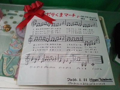 あら、ビックリ!、今や卒業ソングの定番、「旅立ちの日に」を作曲してくれたあの高橋浩美先生が、なんと今日の誕生日に間に合うようにボクの歌を作曲してくれたんだよ!!すごいねぇぇぇぇぇええええ!!ども、ありがとござーます!