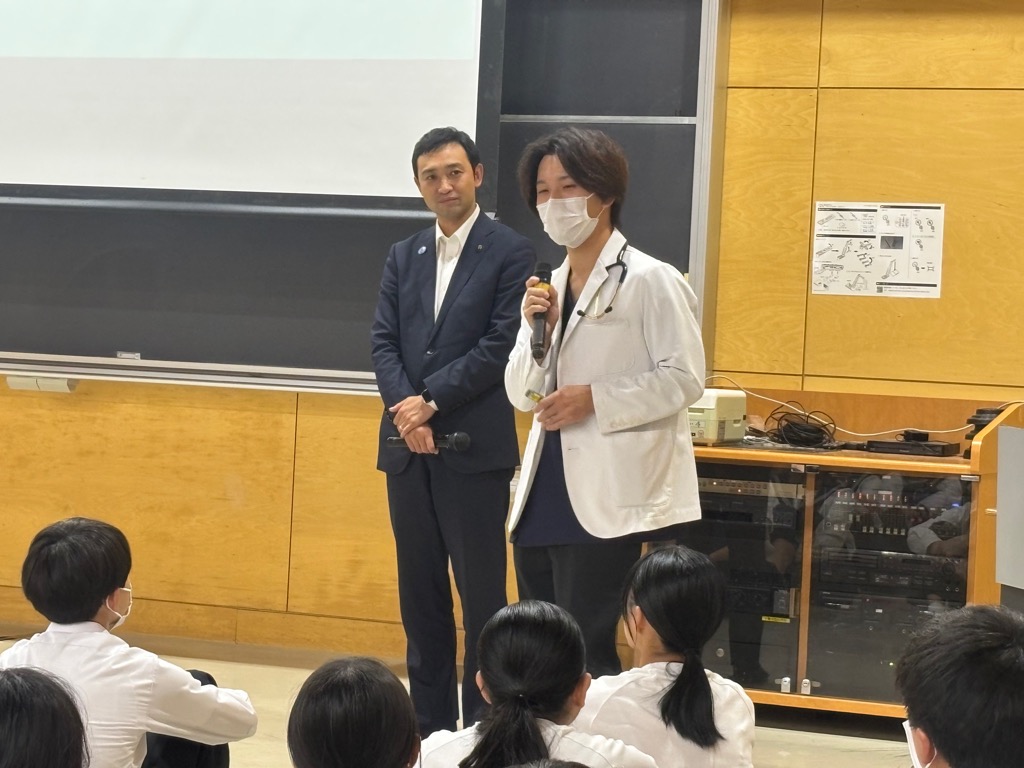 「地域医療は医療関係者だけでは守れない」というお言葉には特に共感を覚え、行政や将来を担う世代にも自分たちに何ができるのかを考えてもらうことの重要性を伝える機会となりました。生徒のみならず、秩父に住む私たちにとっても、取り組むべき課題があると感じました。講演の最後には「将来、夢に悩んだ時はぜひ医療職へ!みんなの秩父を皆で守ってほしい」という栃村先生からの熱いメッセージをいただきました。